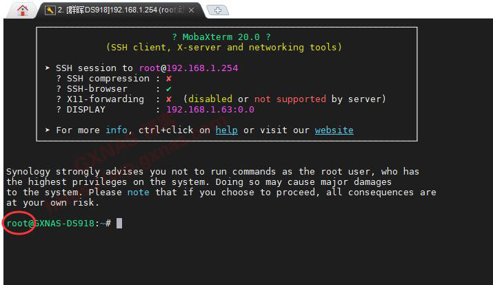 12、在Win电脑打开SSH软件(我这里使用的是MobaXterm),以root账号登录,登录成功会如下图显示有root@开头的字样;