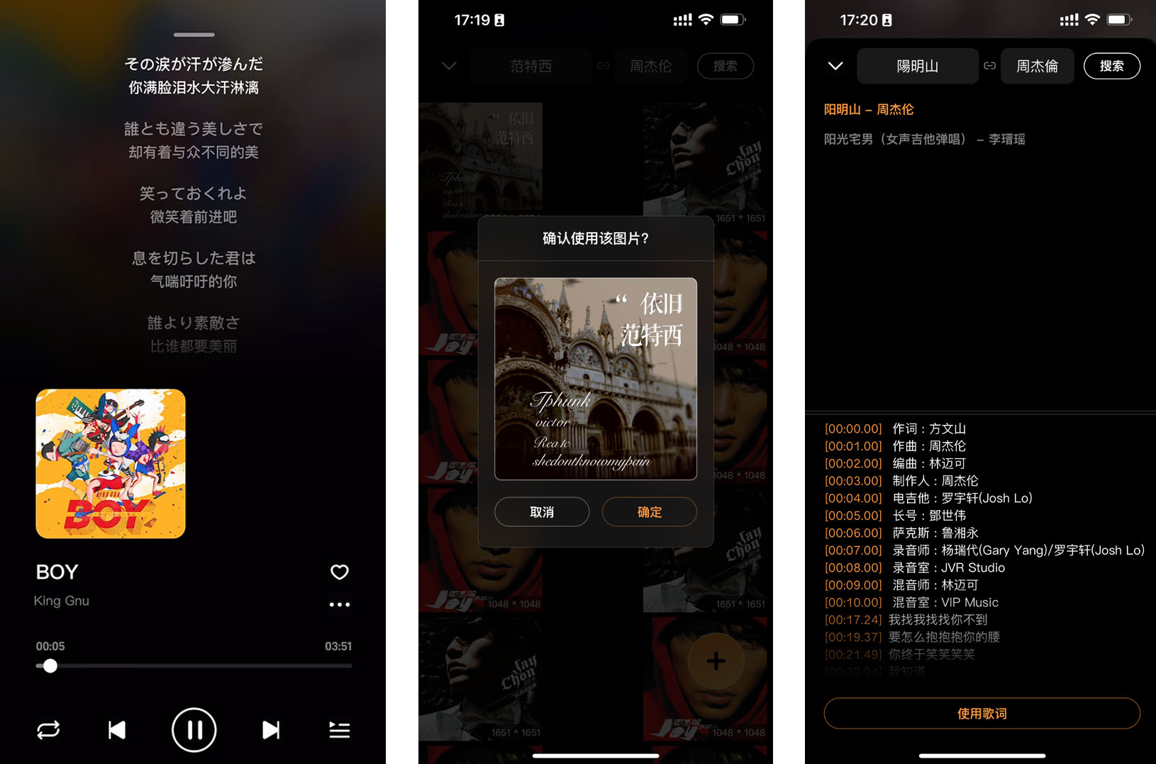 2、手机上的效果:自动匹配歌曲封面和歌词