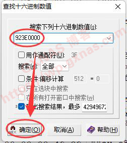14、白群DS918+的核显型号为HD610,对应的核显ID为3E92,3E和92的位置要调换一下,我们要搜索8个字节的数值,所以在这里输入923E0000,确定;
