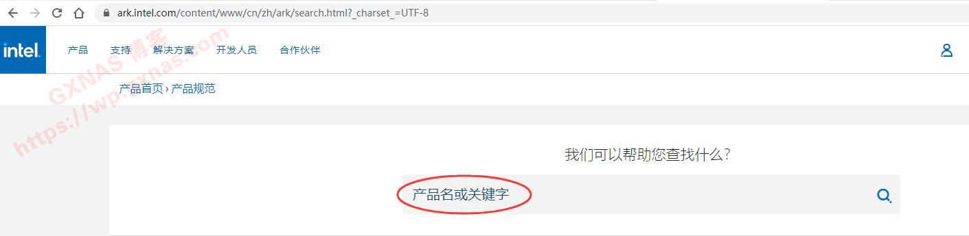 17、在电脑浏览器,打开【intel产品规格搜索】,在“产品名或者关键字”处输入你的CPU型号;