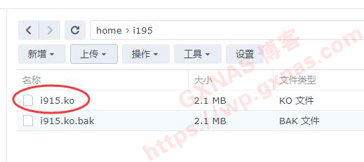 36、把电脑桌面刚才修改好核显ID的i915.ko,上传到群晖文件夹;