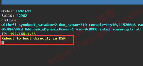 4、屏幕上会显示“Reboot to boot directly in DSM”;