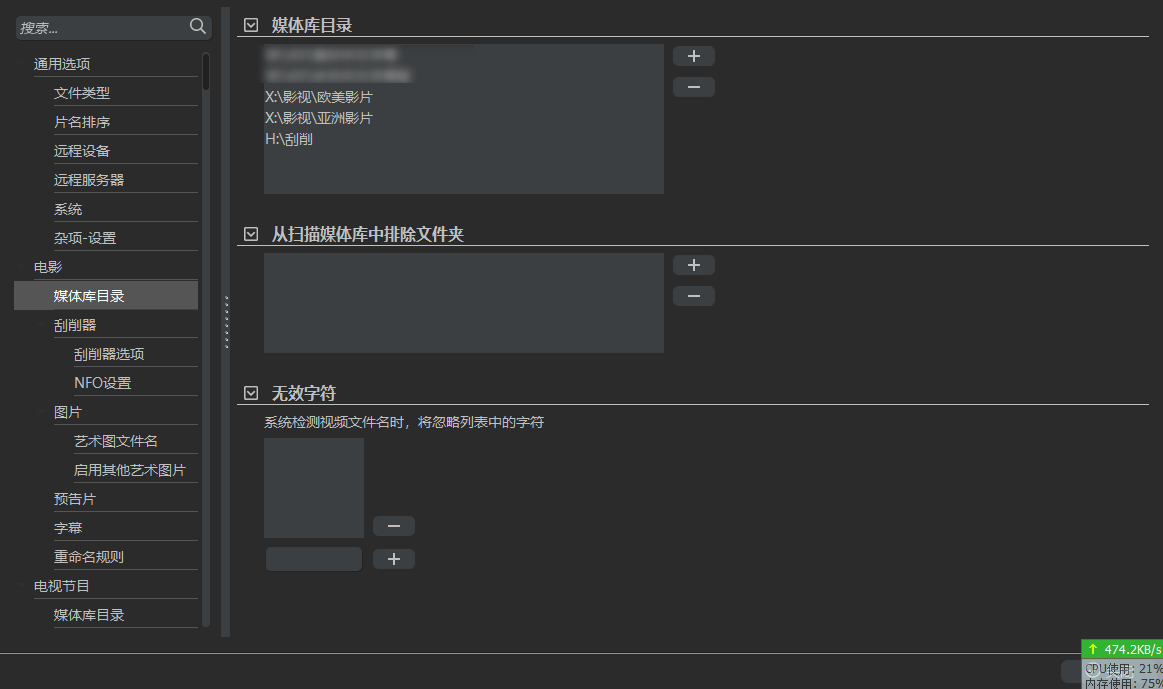 媒体库目录,也就是添加你需要管理的影片文件夹目录,和EMBY一样,从扫描媒体库中排除文件夹,也就是在这个目录下的子文件夹,你想忽略它,不想添加进到TMM里面进行管理,在这里添加那个子目录即可,