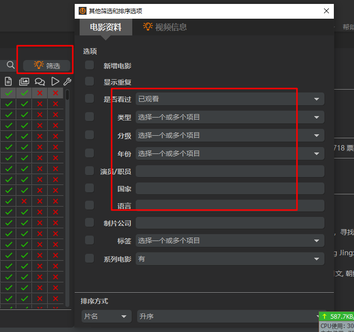 视频信息中的媒体库目录或者官方叫数据源这个位置,就是添加和排除现在在TMM列表中的影片,打勾代表选择这几个媒体库目录,-代表反选,除了这几目录,其余的全部显示,无的话,就是默认状态,全部显示出来,因为TMM和EMDB这种软件,不能像EMBY或者是KODI那种,创建界面隔离状态显示,所以只能是选择排除法的方式显示呈现出你的媒体库文件列表。