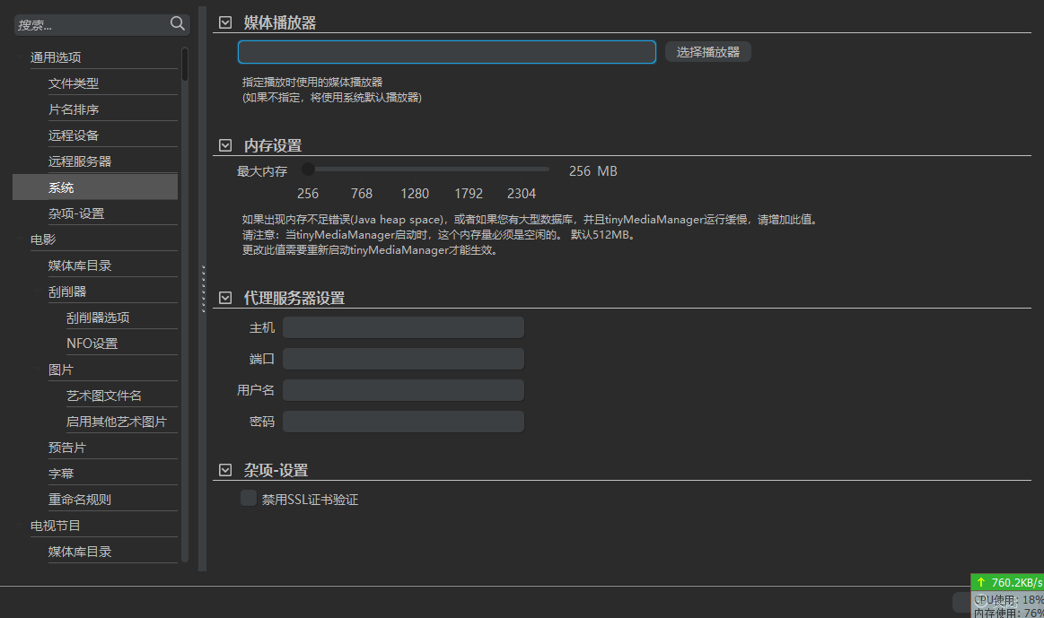 由于TMDB数据库是国外的网站,而国内刮削的比较慢,或者是被墙,导致TMM无法获取TMDB上的元数据,所以这里我们要开代理,其实代理很简单,就是你的主机加上端口号就可以了,这里我用的是v2rayN代理软件,默认端口是10809,如果是ShadowsocksR的话,默认是1080的端口号,其他代理,请自行查看。
