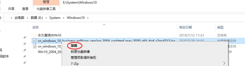 一、在电脑上找到你的Win10镜像,点右键,装载;