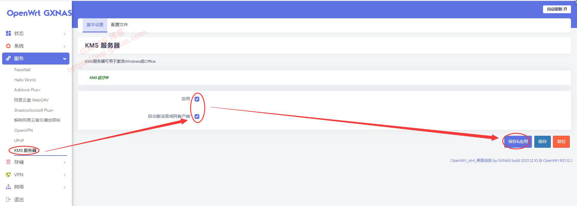 一、首先需要安装好一个OpenWrt系统,并且开启KMS服务器;