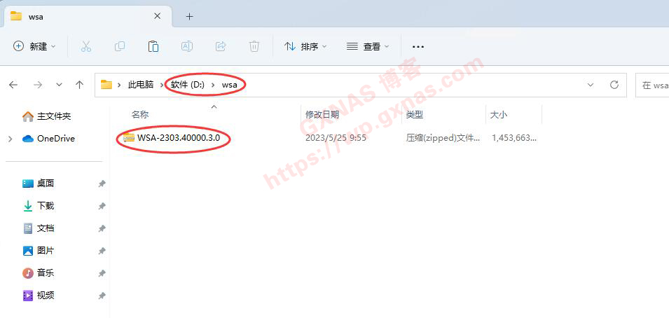 10、打开【这个链接】,把文件下载到电脑上非中文的文件夹下(直接用浏览器下载,迅雷下载不了),我放在D盘的wsa文件夹下(这个路径要记住,等下要用到);