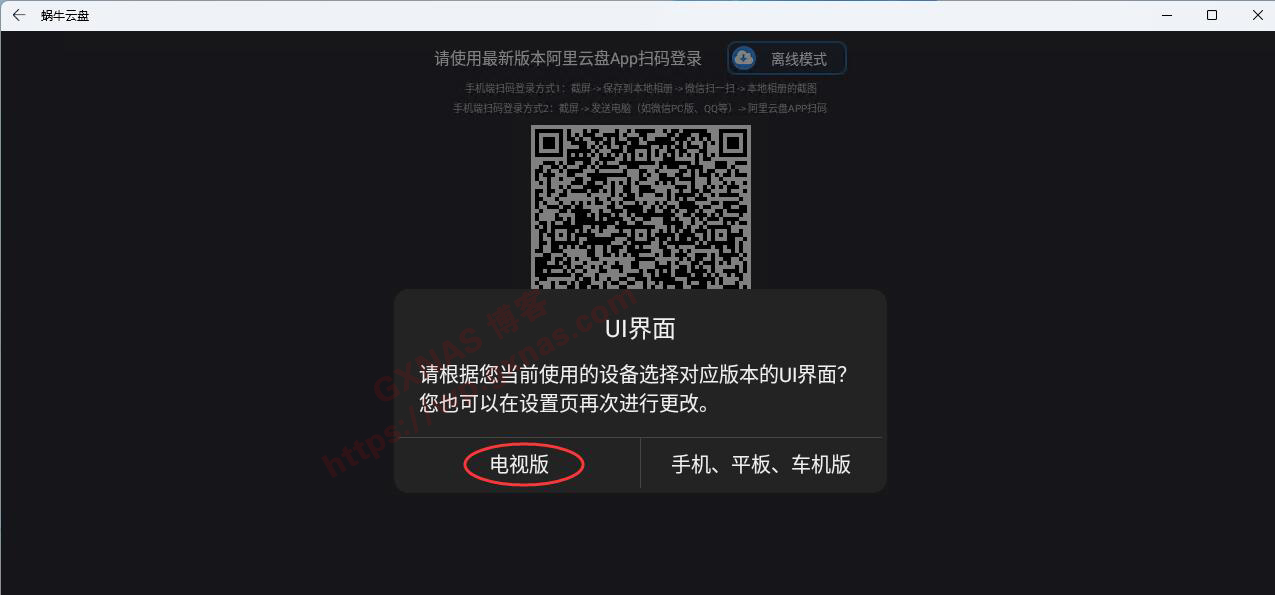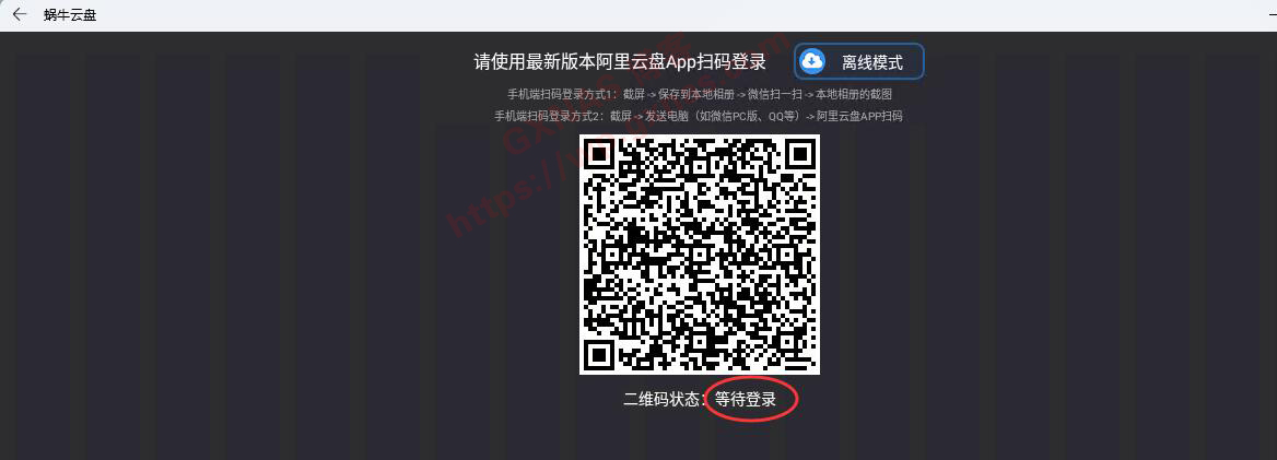 39、屏幕上会显示等待登录,此时需要用阿里云盘的手机APP扫码登录;
