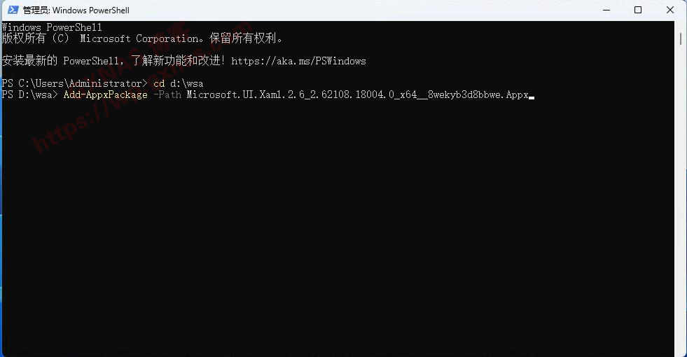 Add-AppxPackage -Path Microsoft.UI.Xaml.2.6_2.62108.18004.0_x64__8wekyb3d8bbwe.Appx