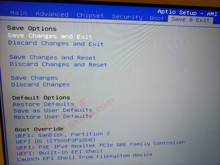 4、进入"Save & Exit",选择“Save Changes and Exit”,回车;