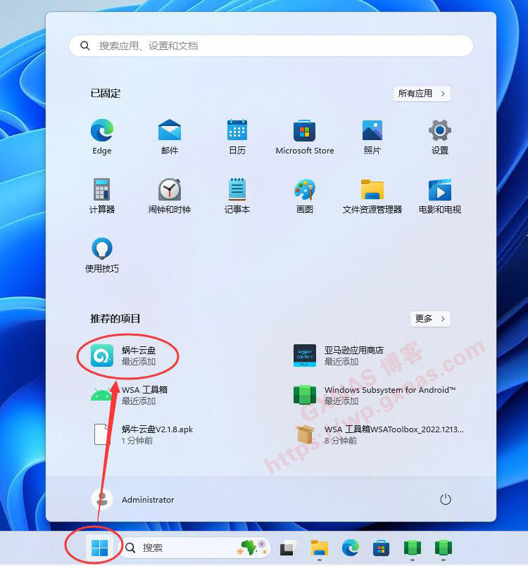 38、点开Windows系统的主菜单键,可以看到刚刚安装的“蜗牛云盘”,点开运行;