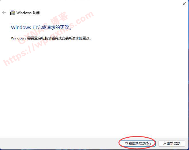 9、提示需要重启,点“立即重新启动”;