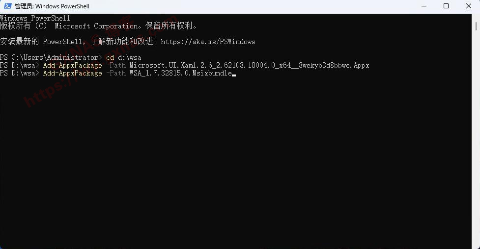 Add-AppxPackage -Path WSA_1.7.32815.0.Msixbundle