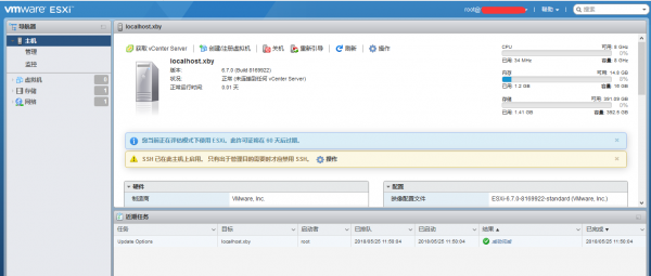 首页 教程 虚拟化 安装 点击Enter 条款F11 硬盘配置,点击Enter 点击Enter 配置登录密码,需要字母、数字和其他字符三种组合一体、并且8位以上 开始安装F11 正在安装 完成安装,点击Enter重启 重启后输入用户名和密码登录 点击配置网卡 点击IPV4 配置IP 开启SSH 点击开启,默认是不开启的,修改完成后按ESC返回 在局域网内任意一台电脑,打开浏览器,输入地址https://IP,默认账号是root,密码自己设置的,登录 登录后的页面 许可证分配需要自行购买
