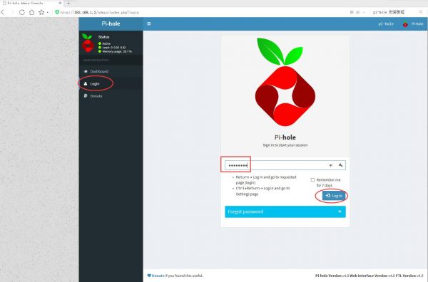 56、在浏览器打开http://ip/admin,在左边的菜单选Login,输入刚才修改的密码,点Lonig按钮登录