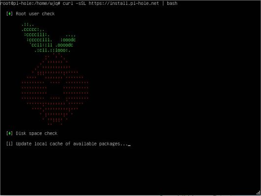 36、输入“curl -sSL https://install.pi-hole.net | bash”回车,开始安装Pi-hole