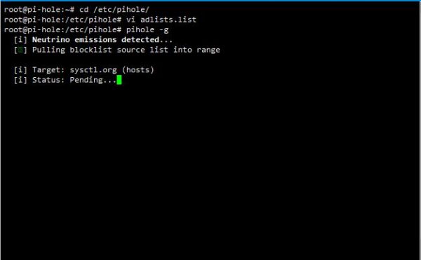 71、耐心等待更新完成后,系统就将easylistchina+easylist、malwaredomains_full、fanboy-social这三个新的广告过滤规则添加到了Pi-hole中去了。