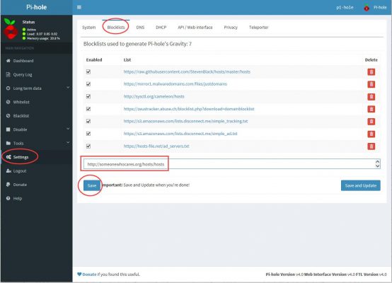 Blocklists used to generate Pi-hole’s Gravity: 9