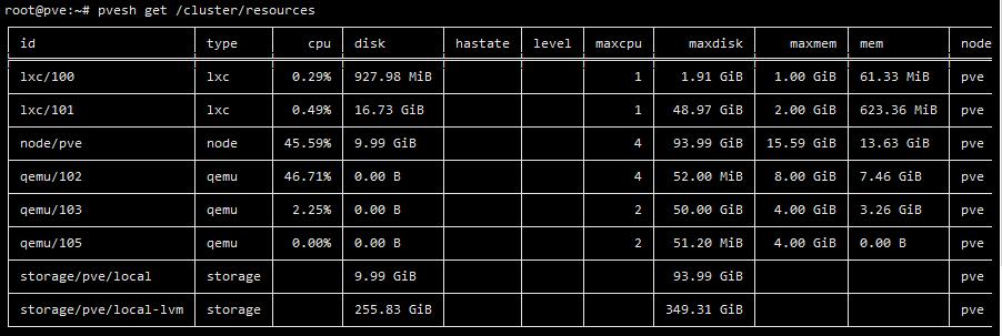 pvesh get /nodes/PVE节点名称/qemu/虚拟机的id/status/current