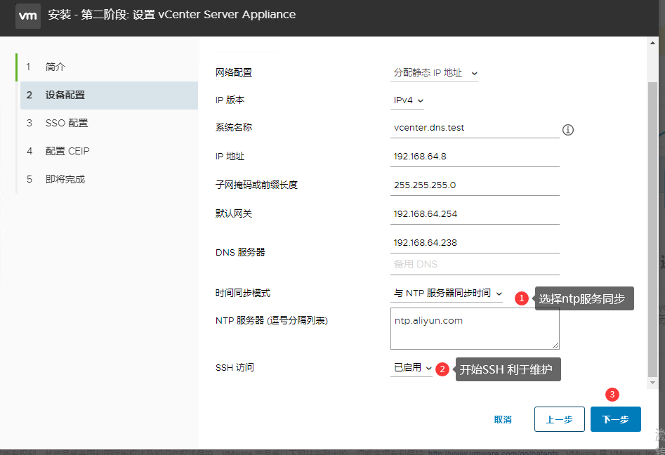 这里出现刚才设置的网络信息,建议配置好ntp服务器和开启ssh,以便时间同步和维护