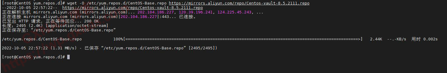 wget -O /etc/yum.repos.d/CentOS-Base.repo https://mirrors.aliyun.com/repo/Centos-vault-8.5.2111.repo