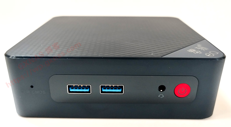 6、主机正面很简捷,从左到右分别为CMOS重置键、两个USB3.2 Gen2接口、耳机插口、电源开关;)
