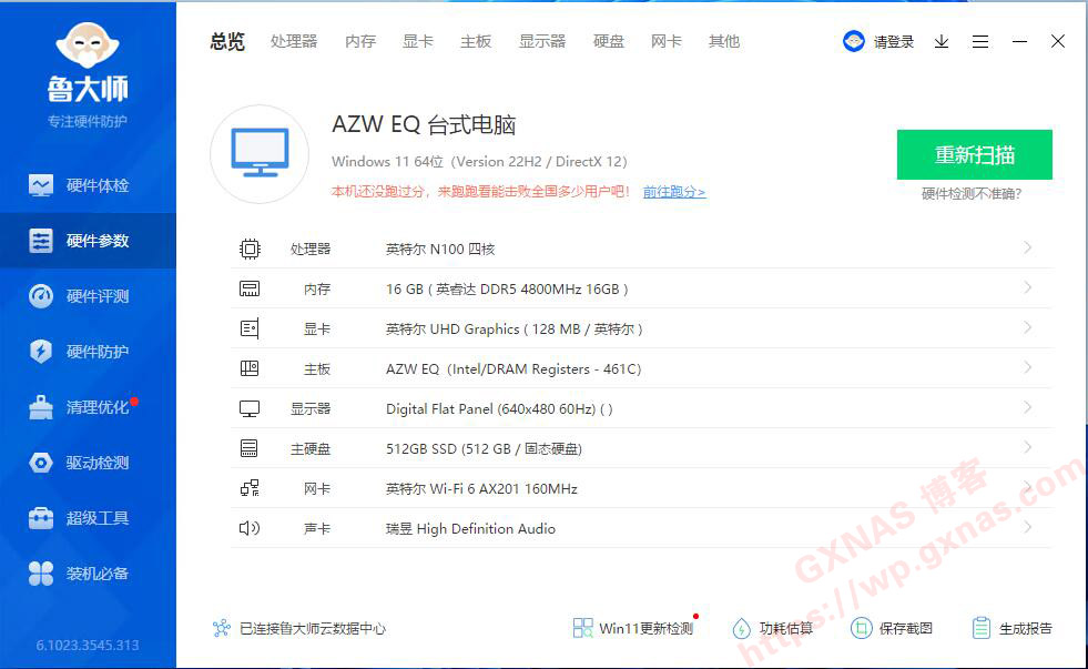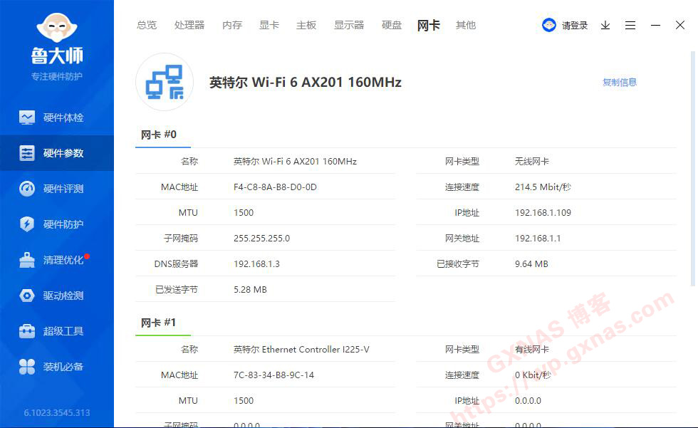 5、鲁大师检测的型号是AX201,实际上无线网卡采用的Intel AX101,支持WIFI6 160MHz;)