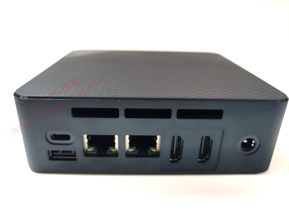 7、主机背面的接口就丰富了,上面有一排散热孔,可以为内存、硬盘、网卡进行散热,避免了高速复制文件发热量过大导致网卡降速的风险;下方还有一个Type-C接口,一个USB3.2 Gen2接口、两个2.5GB网口、两个HDMI2.0高清接口,以及一个DC电源口,可以同时支持两个显示画面输出;)