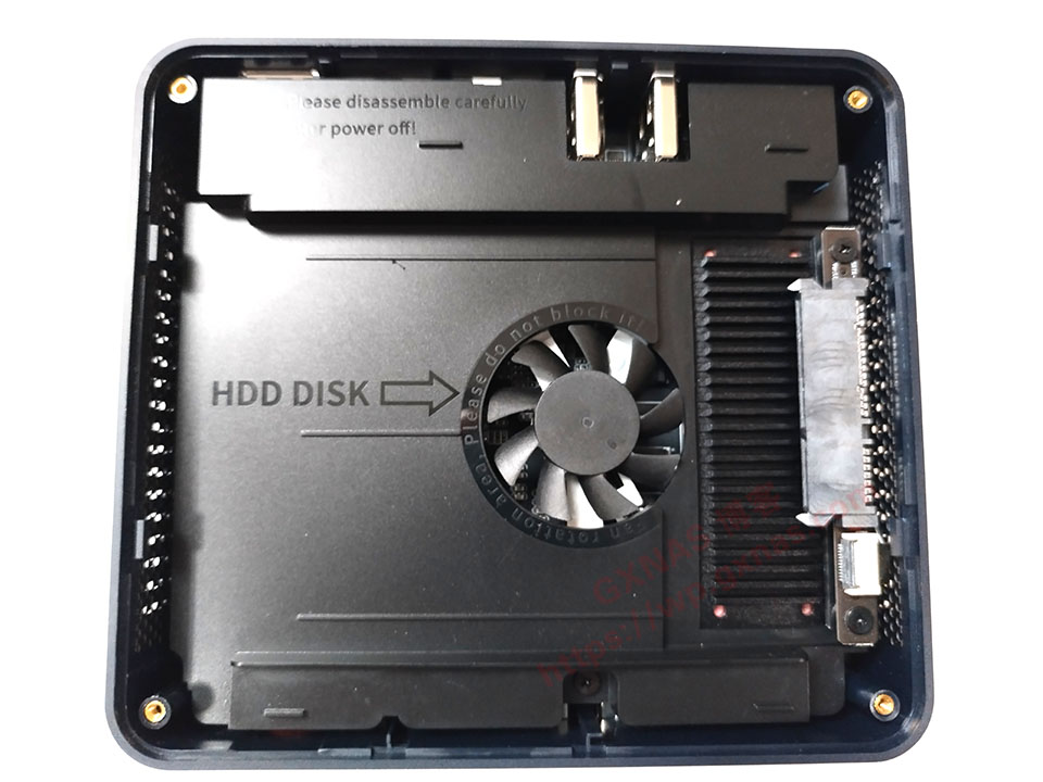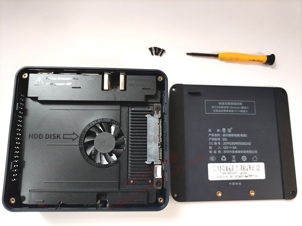 2、打开盖子,发现内部做工很精致,看到有一个2.5寸硬盘位,并且专门配了一个硬盘散热器,为硬盘提供了稳定的散热功能,不得不说这个设计想得真周全;)