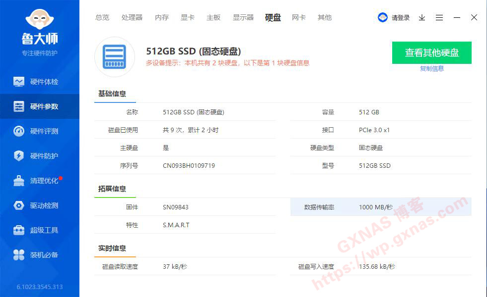 4、硬盘为512GB NVME固态硬盘,累计使用2小时,非常新;)