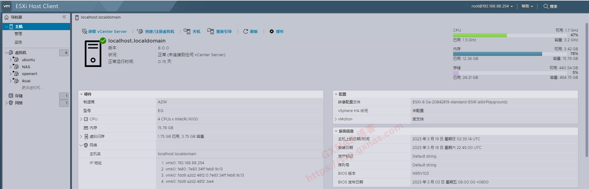 1、根据朋友的需求,给他安装了ESXI8.0用来做底层虚拟化环境,然后在ESXI里面安装爱快软路由、OpenWrt软路由、NAS、Linux系统ubuntu等多个系统同时运行,可以看到当前CPU占用率为30%;)