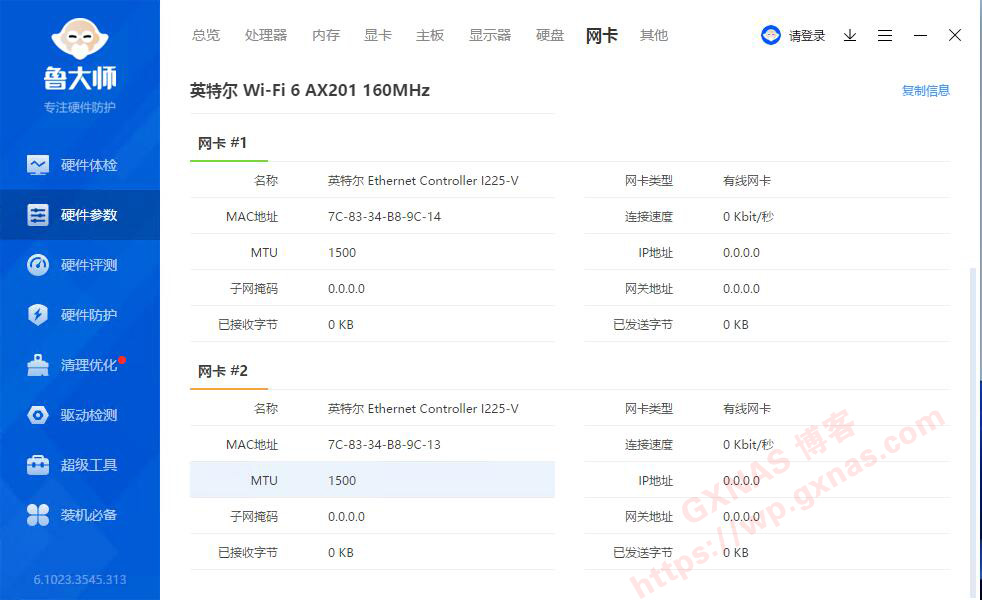 6、两个有线网卡型号均为Intel i225-v,速率为2.5GB;)