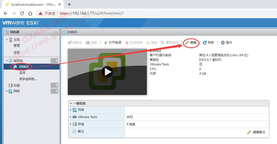 18、找到刚刚建立的DS923虚拟机,编辑;