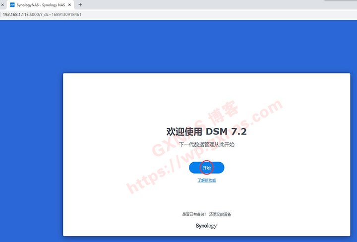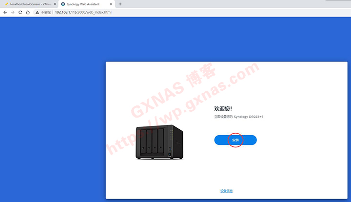 28、在电脑浏览器打开群晖的IP地址,安装;