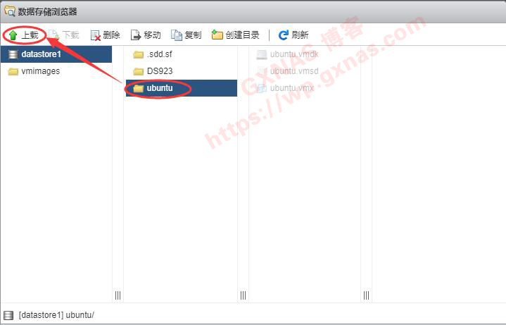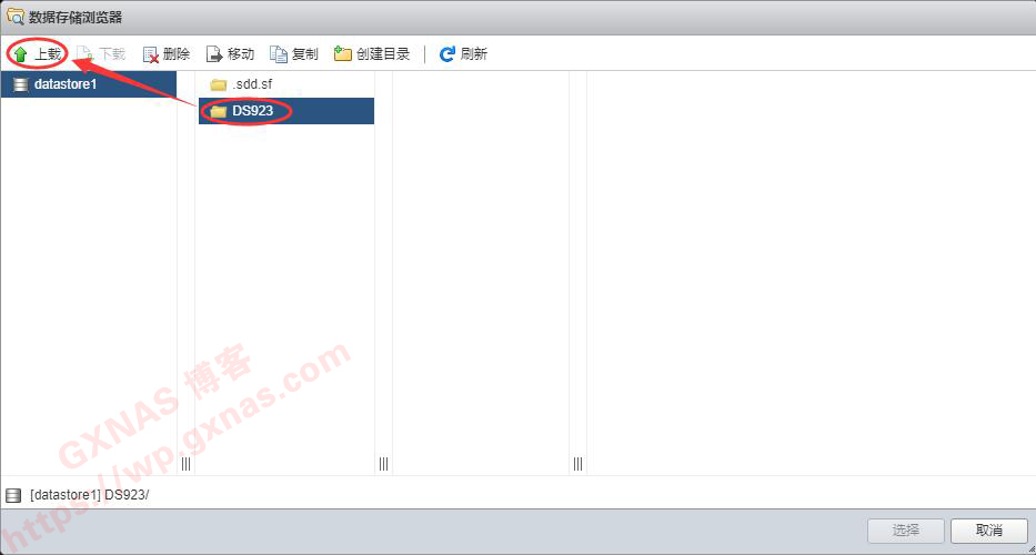 20、选中DS923文件夹,点“上载”;