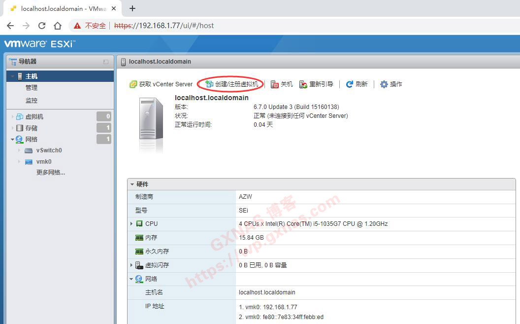 10、在电脑浏览登录ESXI,点“创建/注册虚拟机”;