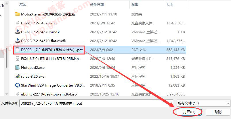 30、找到DS923+_7.2-64570(系统安装包).pat,打开;