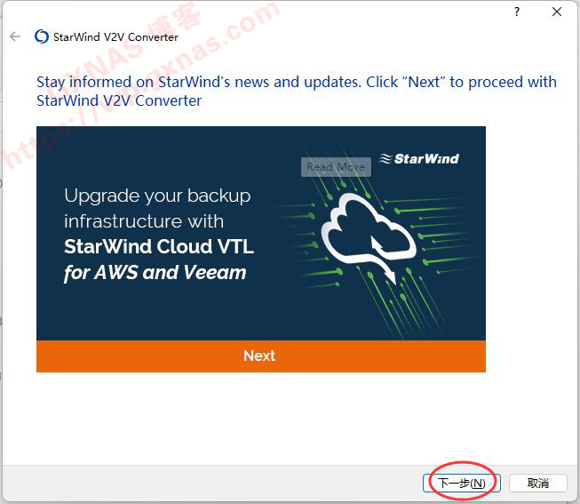 1、在电脑上安装StarWind V2V Image Converter V8.0.167.0并运行,点“下一步”;