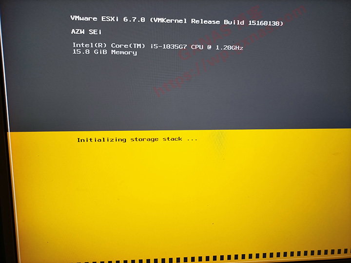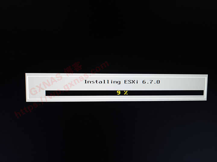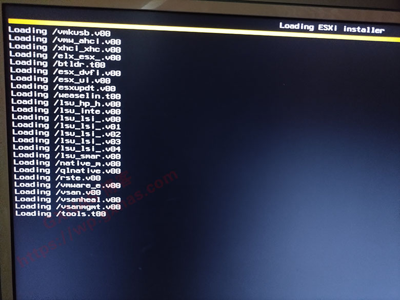 9、主机自动重启,然后在左下角会看到如下图所示,就表示即将从U盘启动进入ESXI的安装界面;