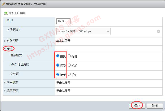 28、把“安全”里面这三个参数,全部设置为“接受”,保存;