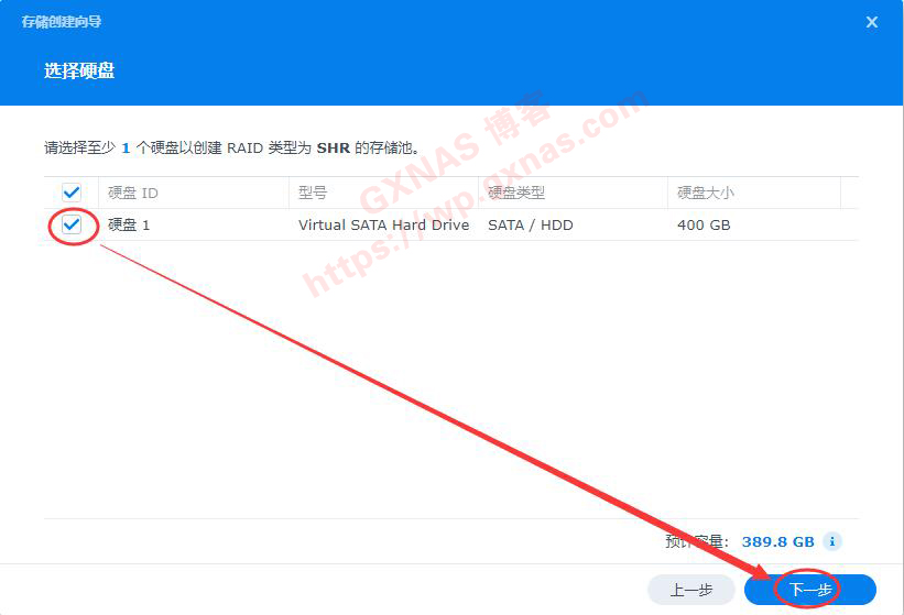 49、勾选硬盘1,下一步;