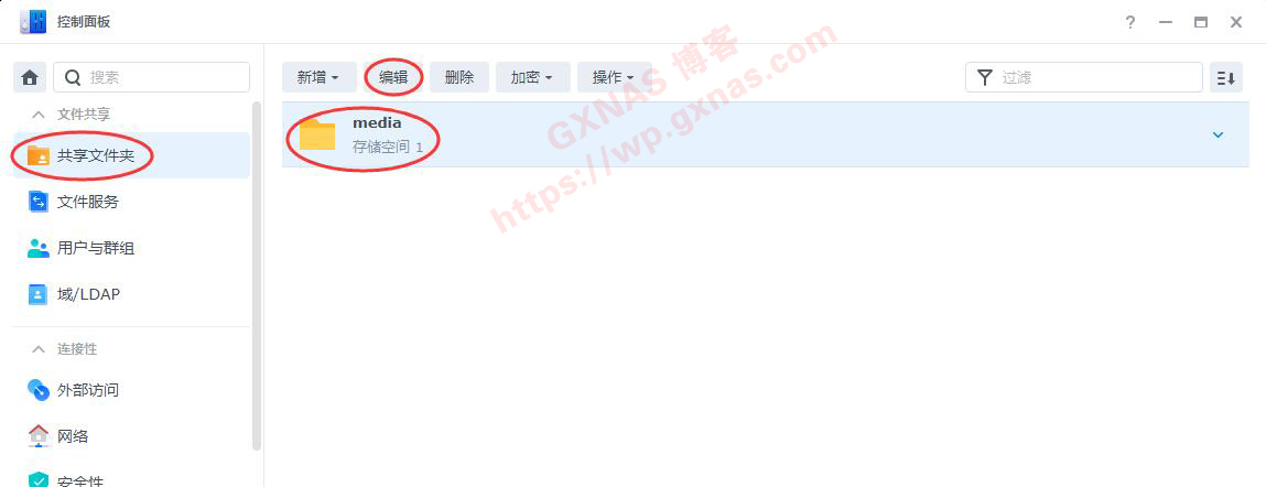 67、群晖控制面板,共享文件夹,media文件夹,编辑;