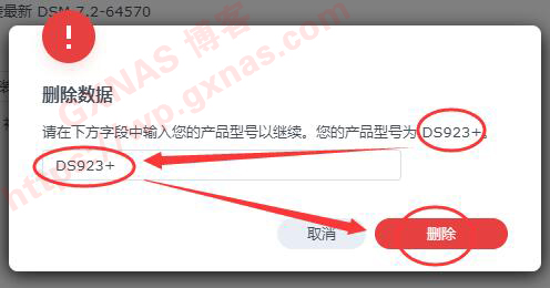 33、输入我们要安装群晖系统的型号,我装的是DS923+,所以输入DS923+,删除;