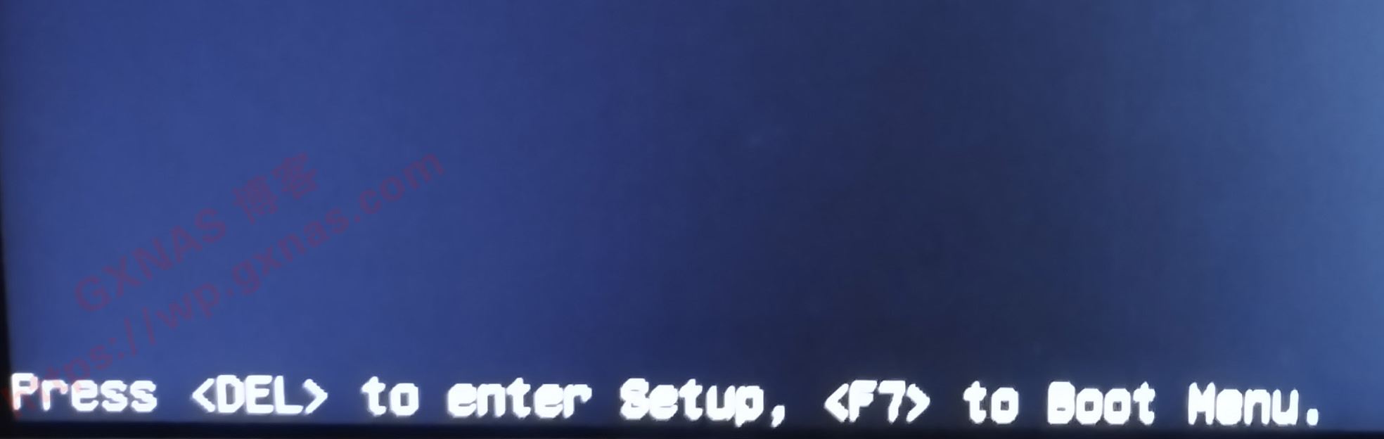 6、把上一步骤写好的U盘拿到零刻SEi10 1035G7迷你电脑主机的USB口上,接上键盘,显示器,网线,按主机电源开关开机,看到屏幕左下角显示下图这行字的时候,马上按下键盘上的DEL键,进入BIOS界面;