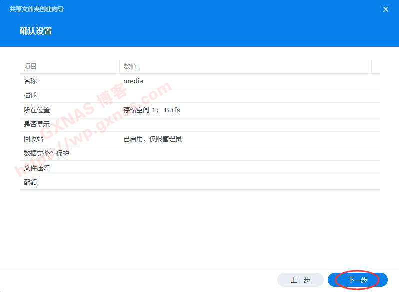 58、名称写一个非中文的名字,我这里要建立一个文件夹,专门用来做做影视库,所以写的是media,下一步;