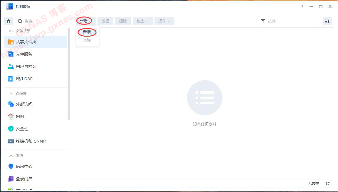 57、群晖控制面板,共享文件夹,新增,新增;