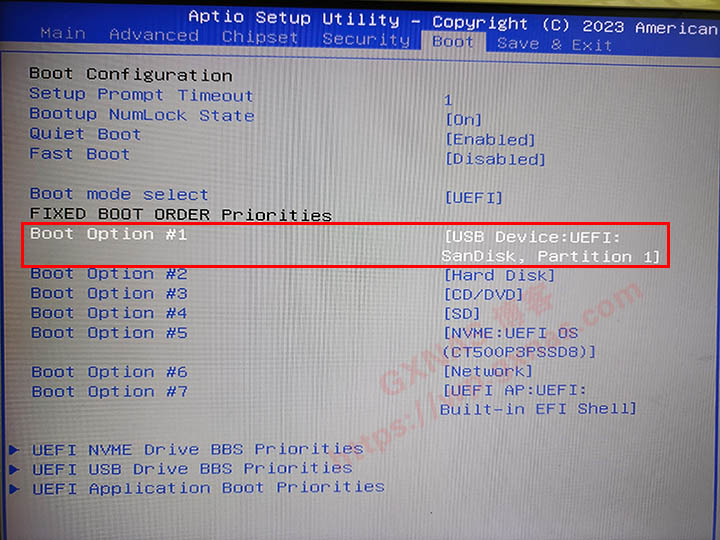 7、利用键盘的上下左右键,移动到下图这个位置,按回车进入改成U盘启动(如果你不是用零刻SEi10 1035G7,那么BIOS设置界面有可能会不一样,请自行更改);