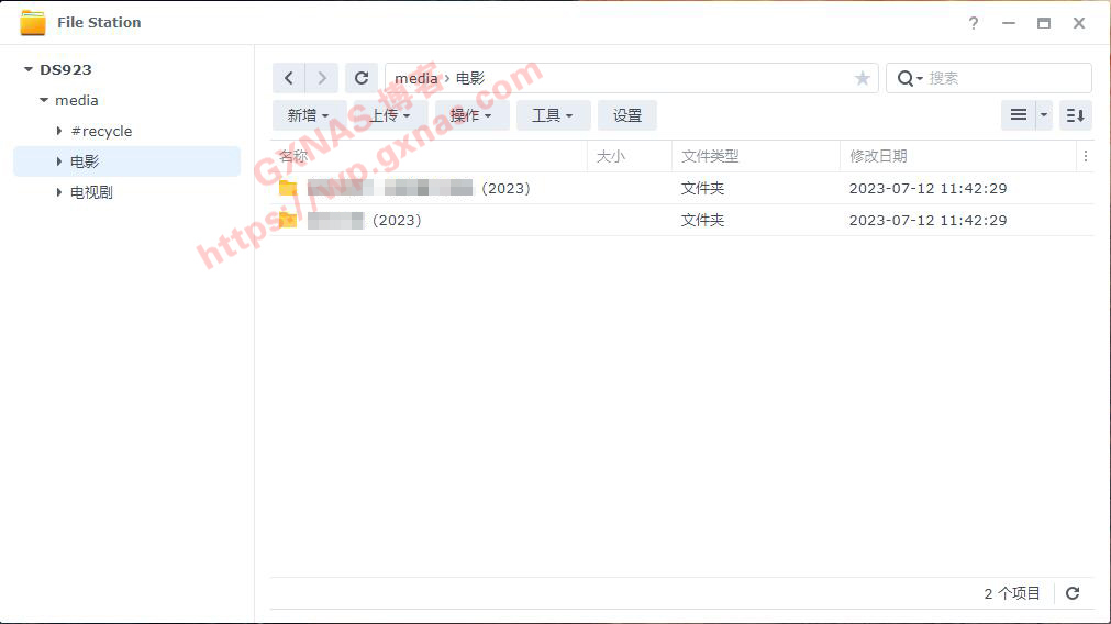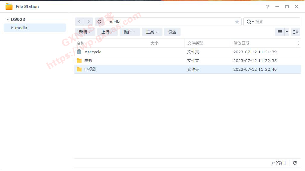63、打开群晖桌面的File Station,在media里面建立两个文件夹:电影、电视剧,方便将来分类存放;