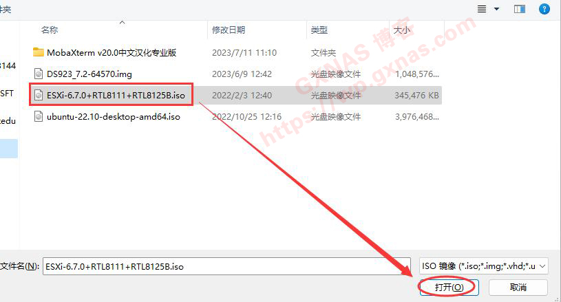 2、找到ESXi-6.7.0+RTL8111+RTL8125B.iso(RTL品牌的网卡只能装ESXI6.7才支持,如果使用Intel网卡可以装ESXI7或者ESXI8),打开;